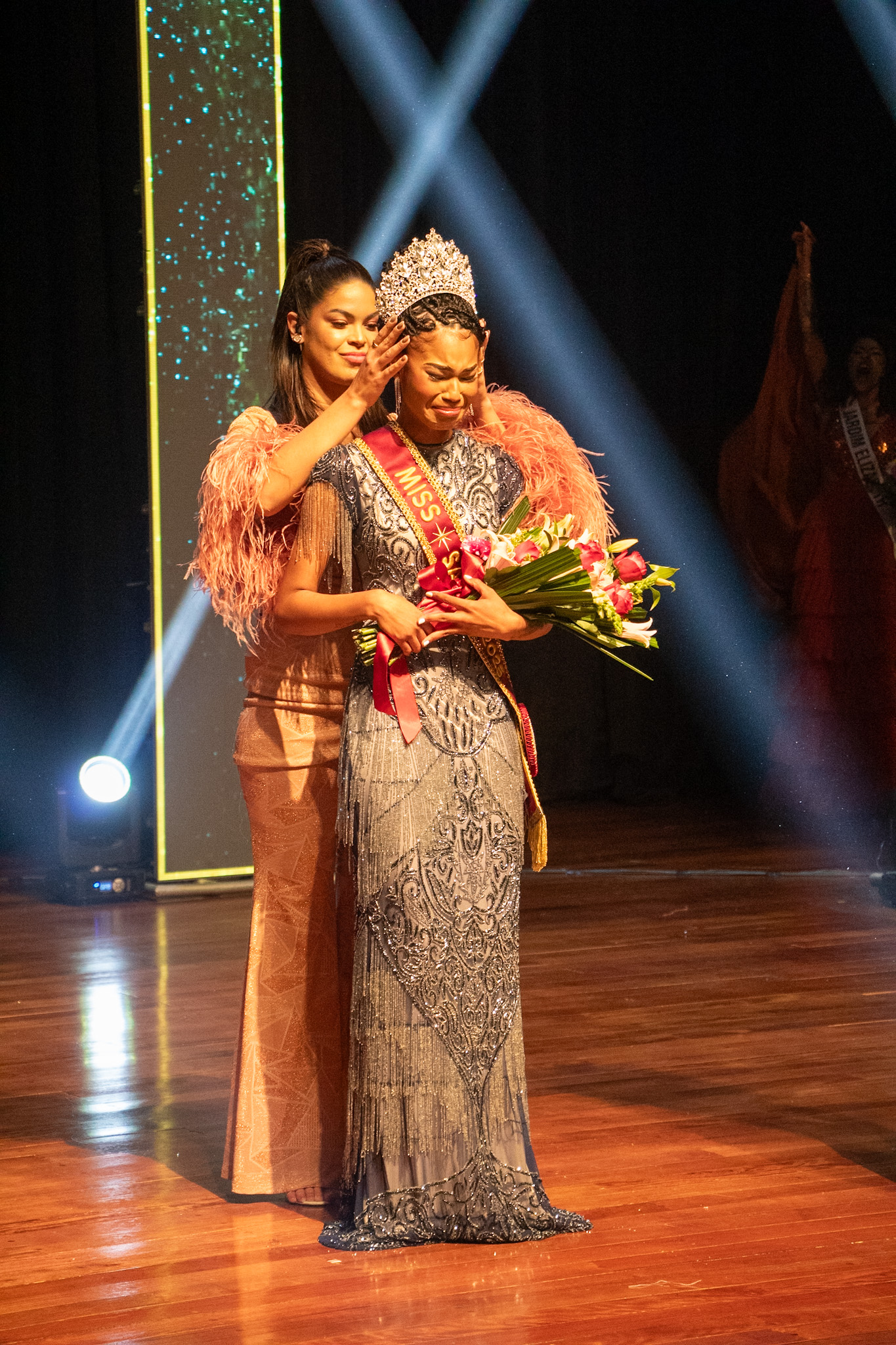 A noite também foi abrilhantada pela apresentação especial da cantora Ray Mota, que encantou o público com sua performance. Entre as presenças de destaque, estava também a atual Miss Universe São Paulo, Giovana Figlie, que além de prestigiar o evento participou de um dos momentos mais emocionantes da noite: foi ela quem colocou a nova faixa em Eduarda Rodrigues, simbolizando a continuidade e o fortalecimento do legado no cenário estadual.
